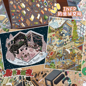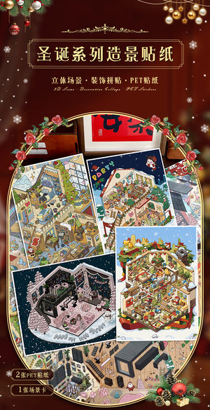 Christmas Space DIY 3D Scene Stickers - 4 Cute Miniature Scenes #025