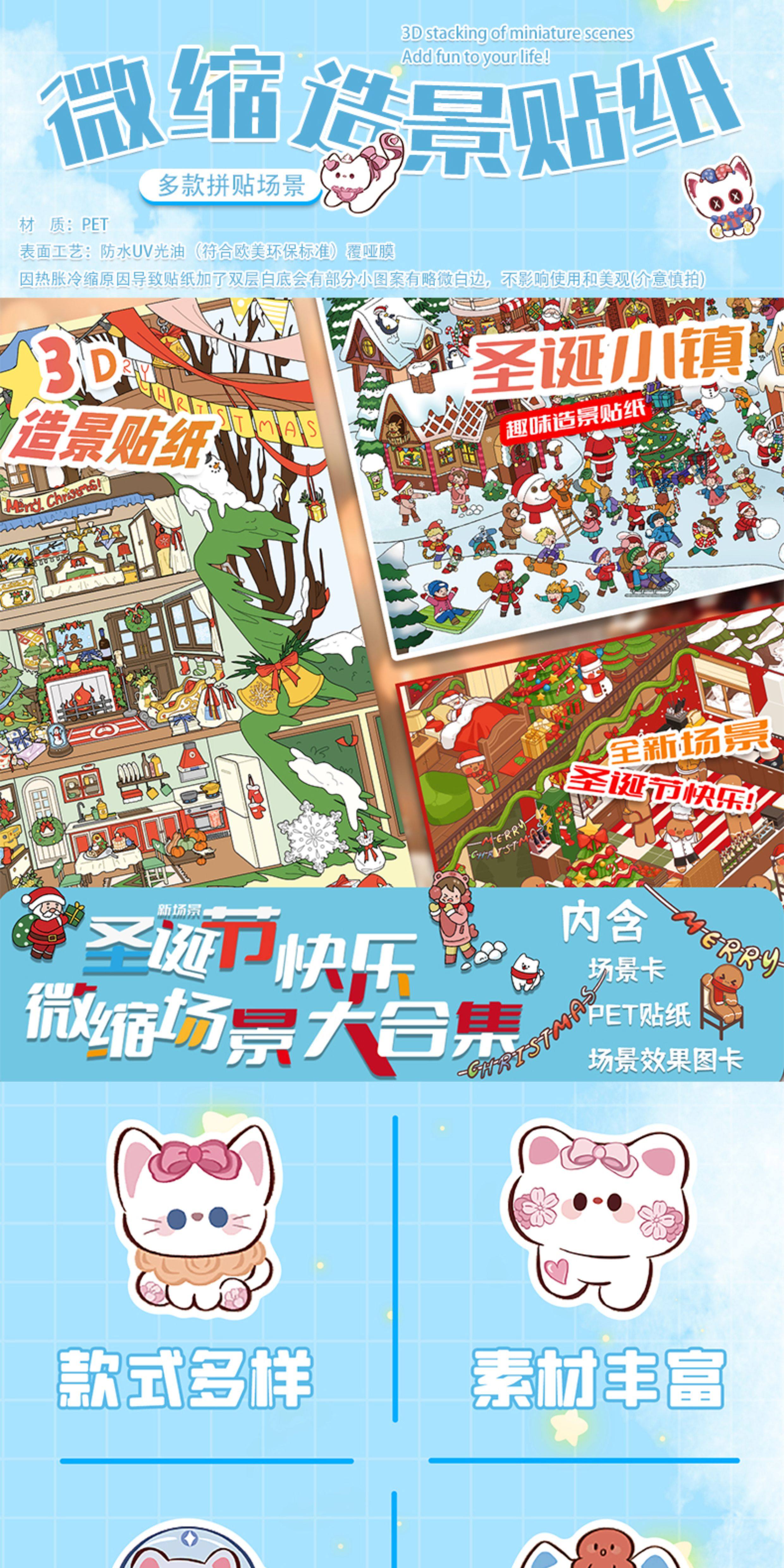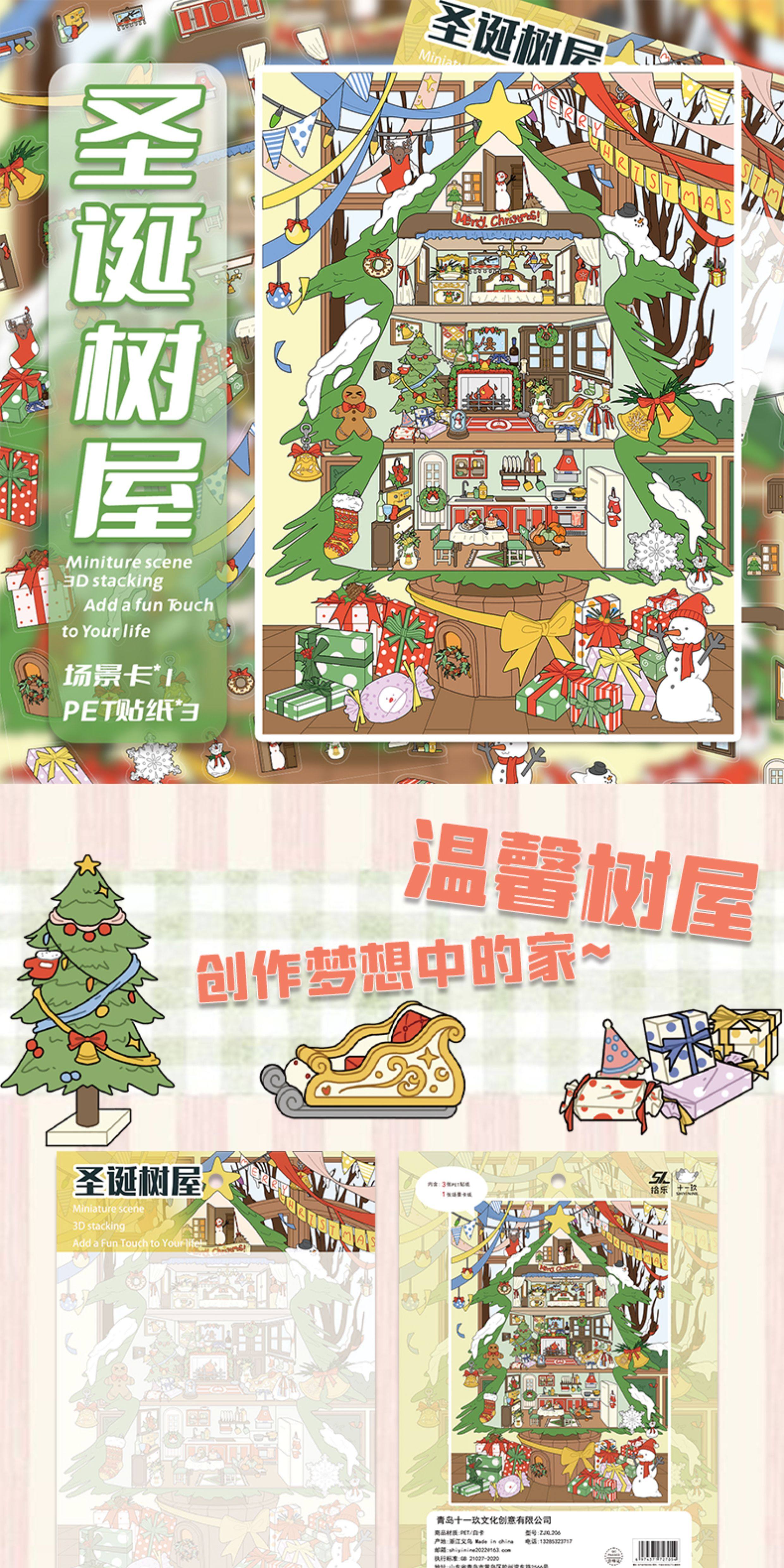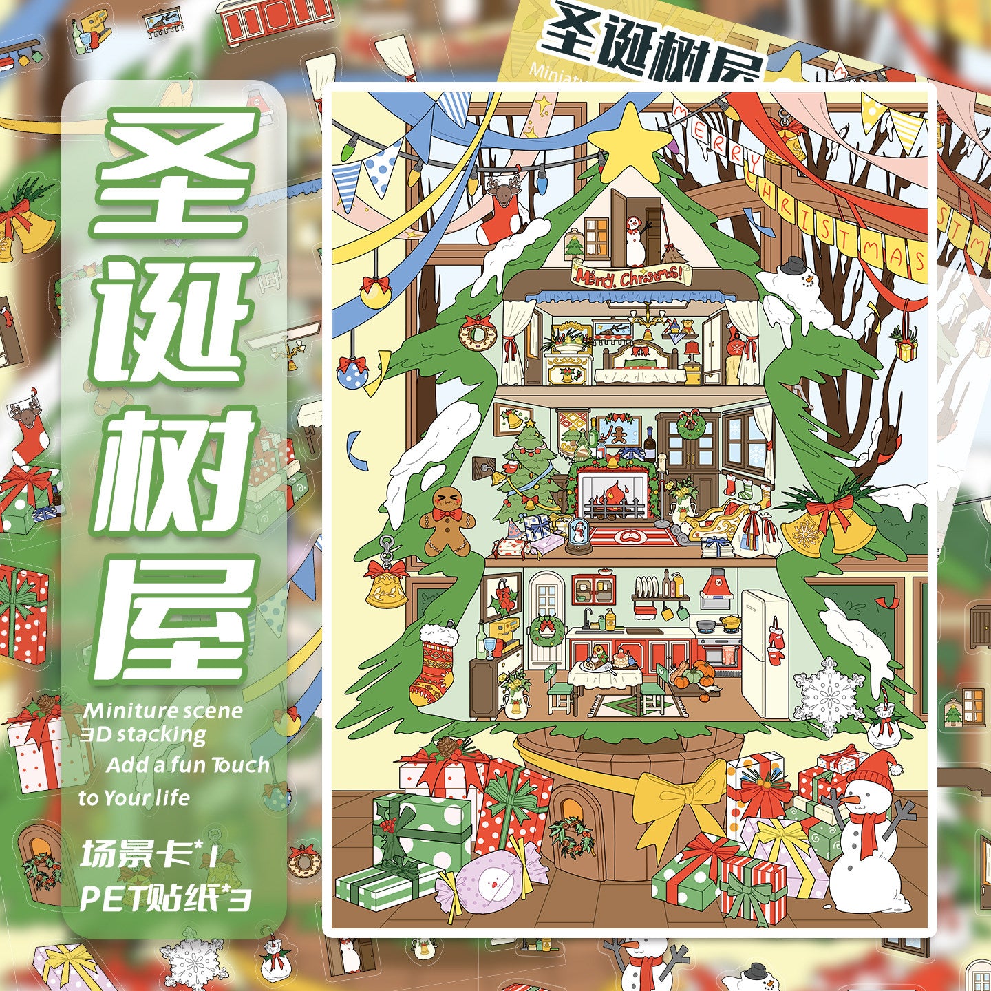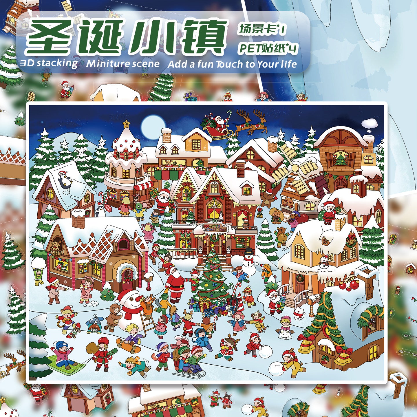 Christmas theme DIY 3D Scene Stickers - 3 Cute Miniature Scenes #030