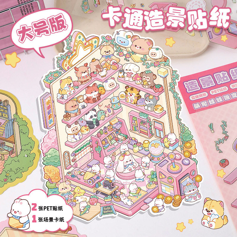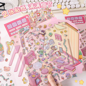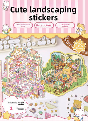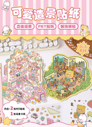 Cute Series DIY 3D Scene Stickers - 2 Cute Miniature Scenes #141