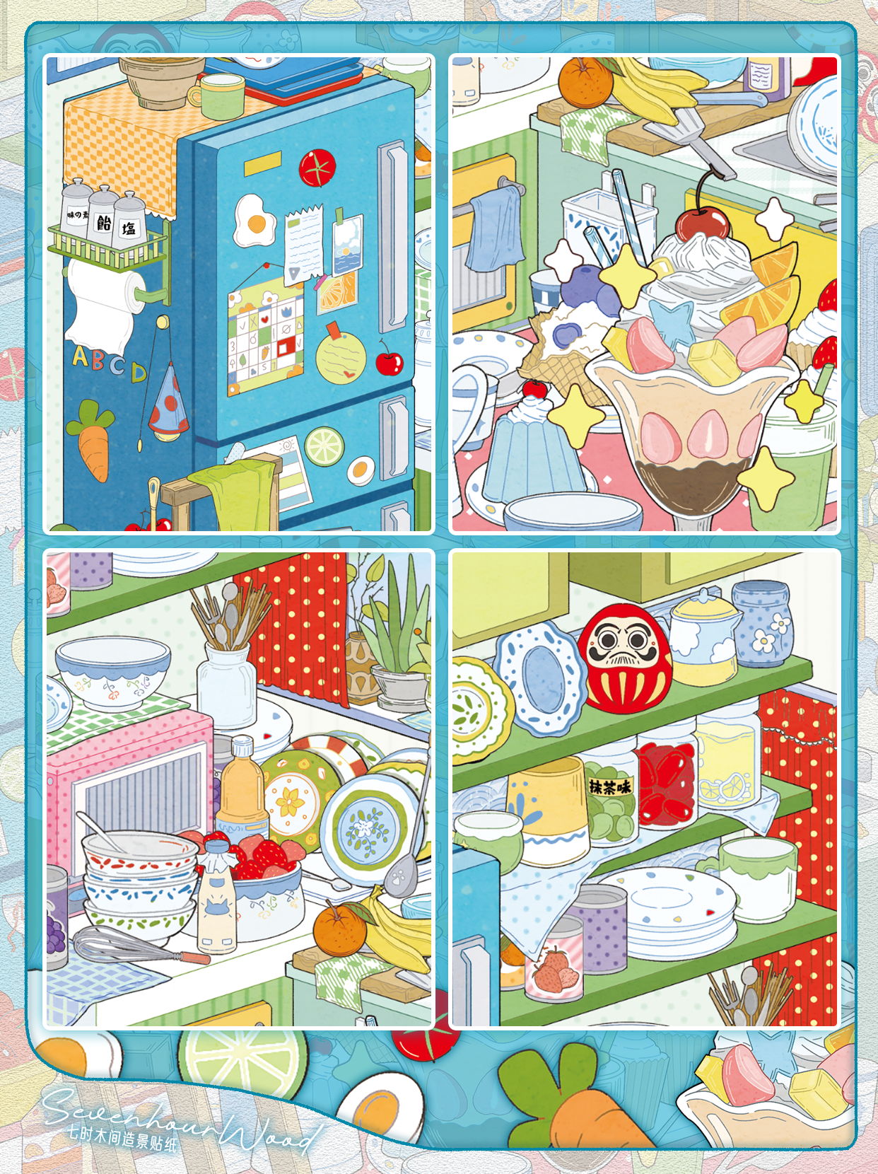 Daily Life DIY 3D Scene Stickers - 4 Cute Miniature Scenes #020