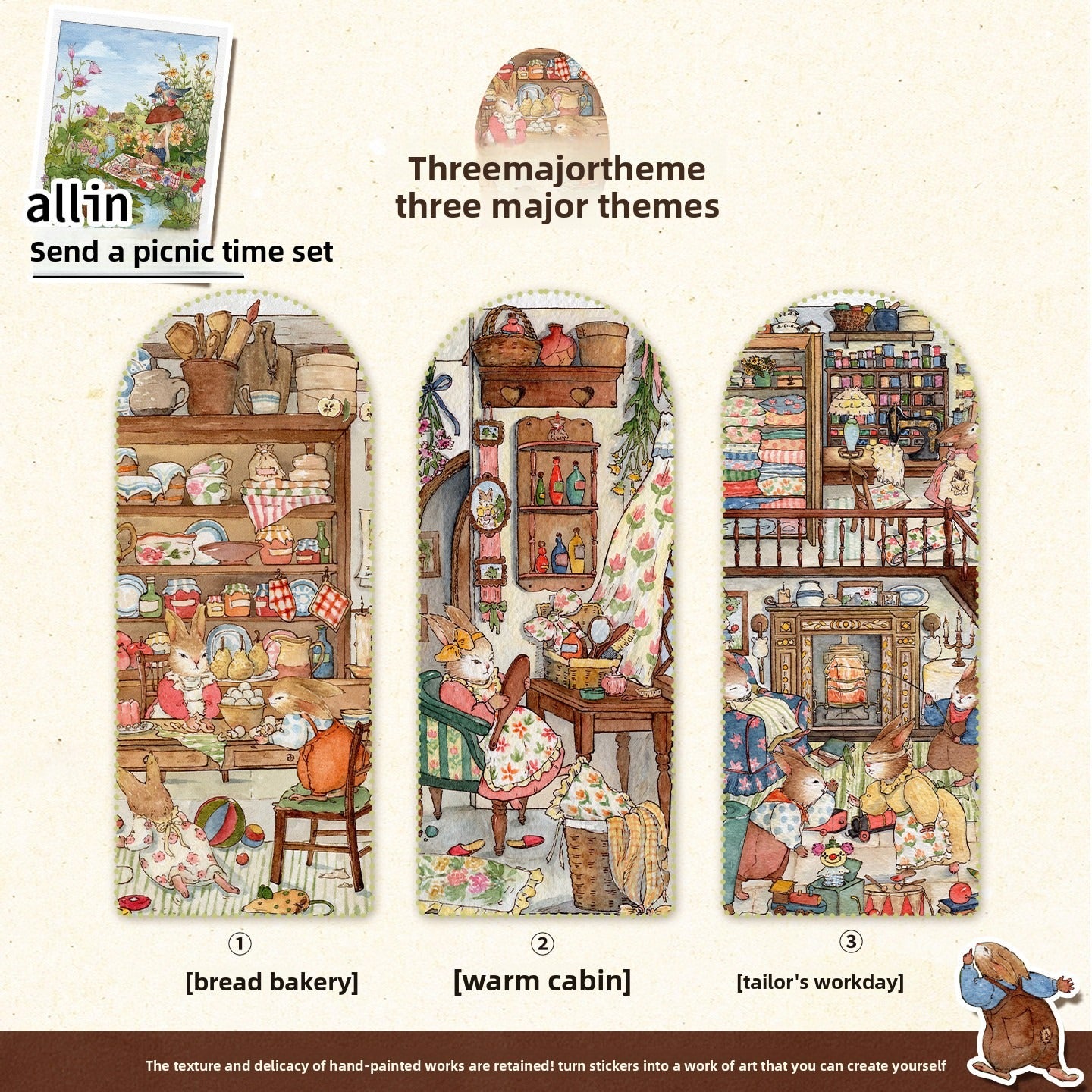 All in-4, Tailor’s Workday, Bread Bakery, Cozy Cottage, Picnic Time