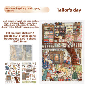 Diary DIY 3D Scene Stickers - 4 Cute Miniature Scenes #051
