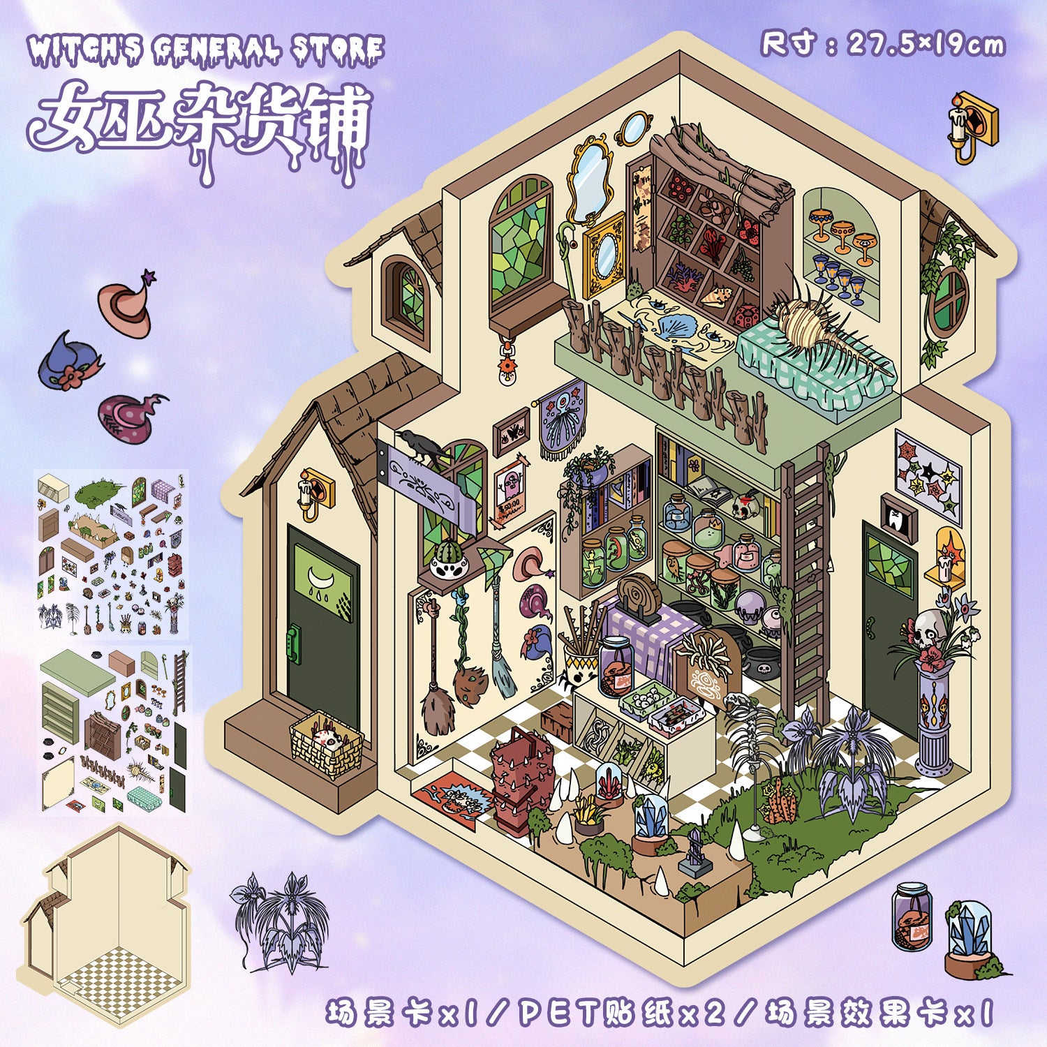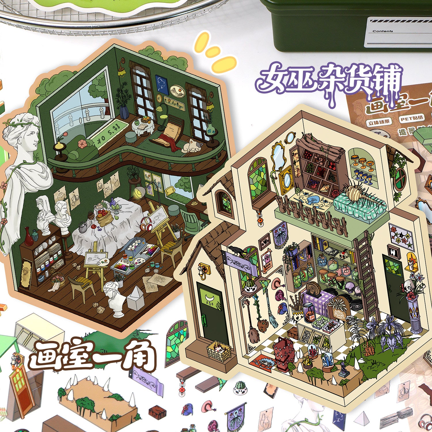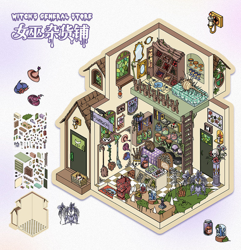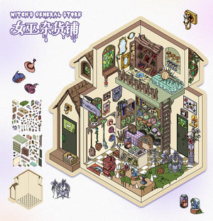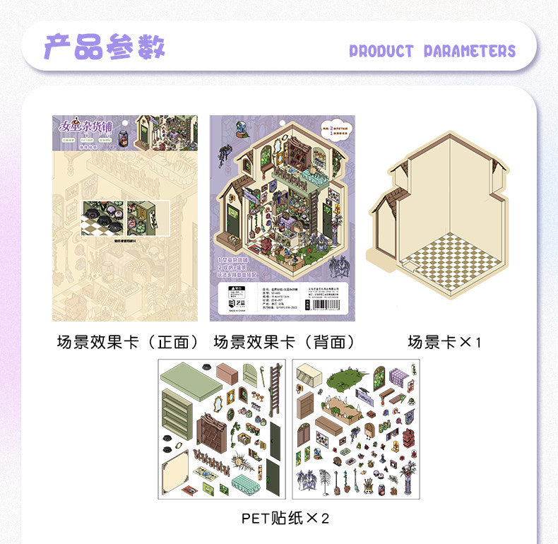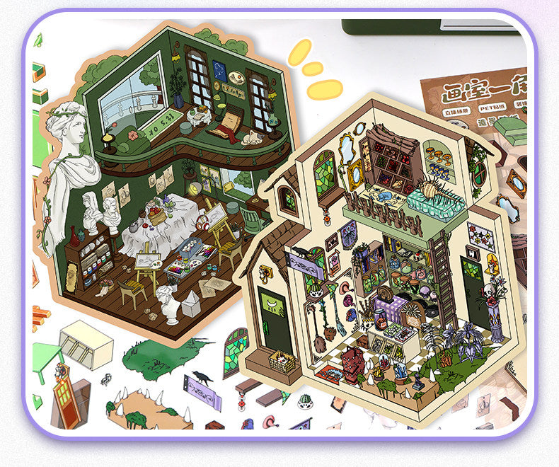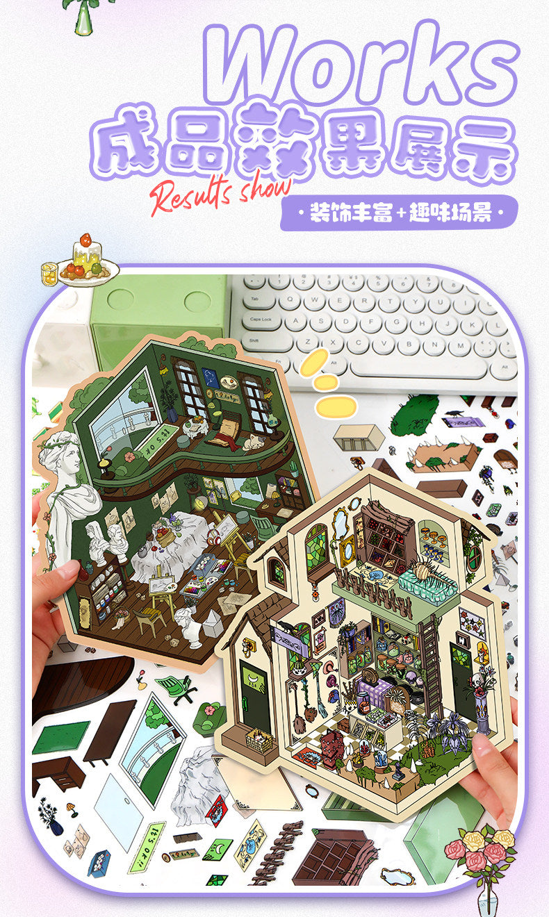 Fantasy Cabin DIY 3D Scene Stickers - 4 Cute Miniature Scenes #076