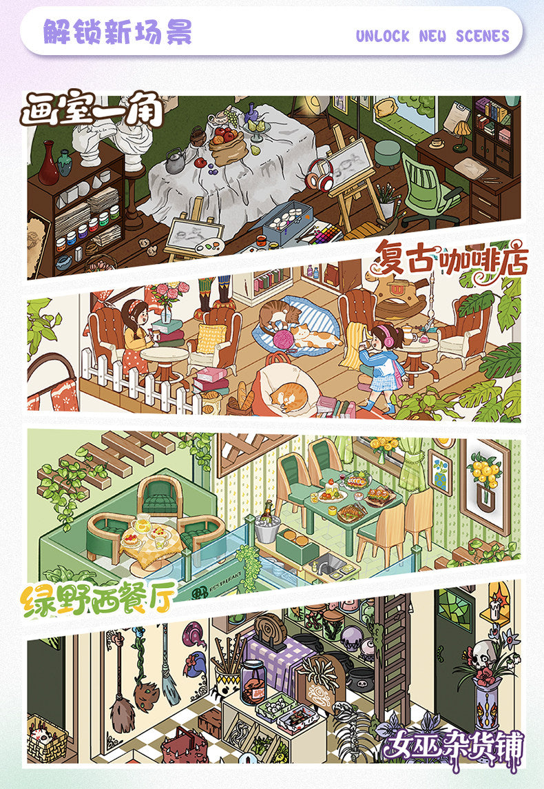 Green Field Western Restaurant, Vintage Coffee Shop, Witch's General Store, A Corner of the Studio, All in-4 |