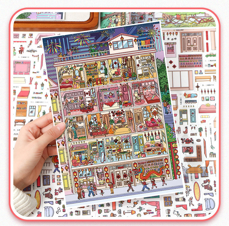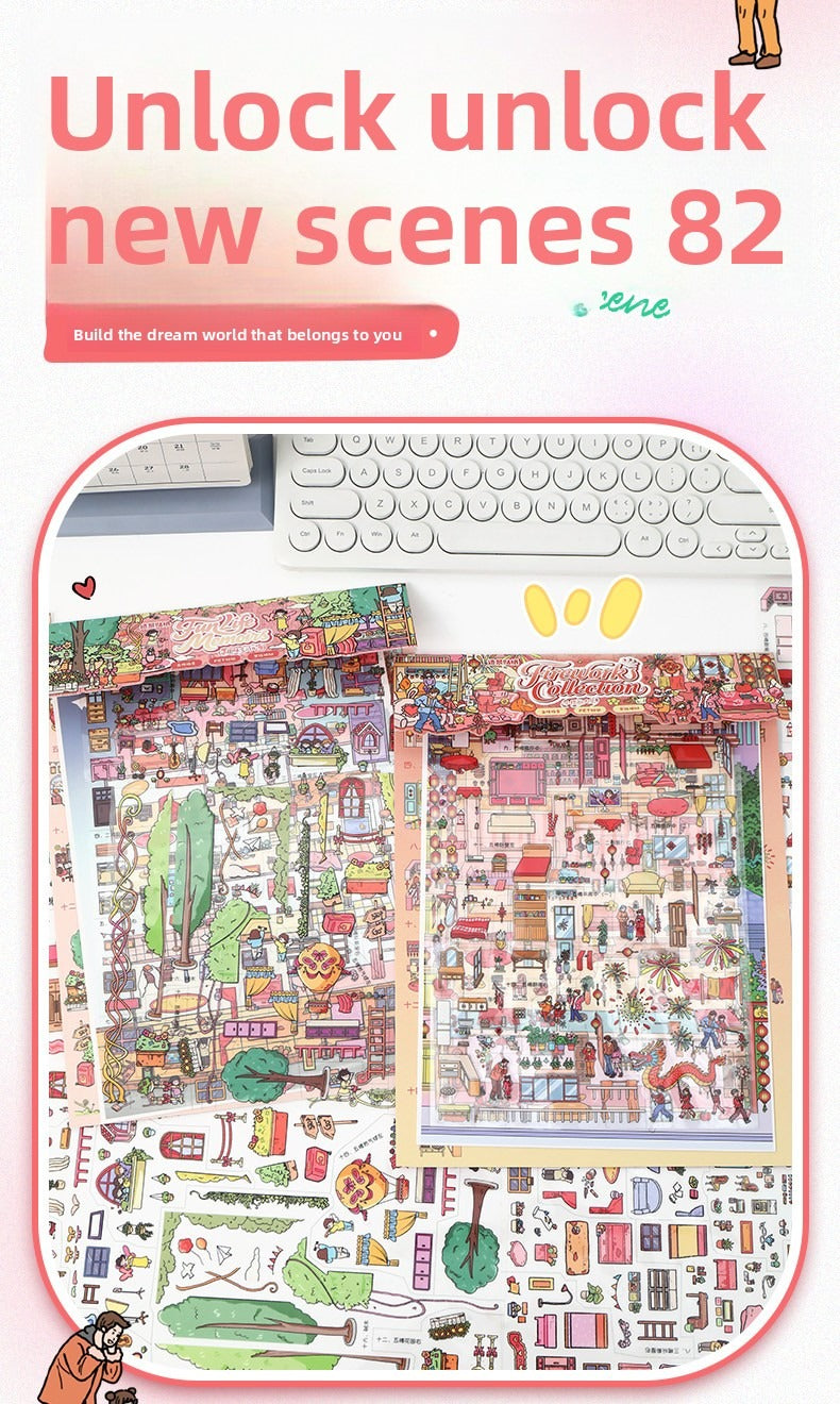 Festival Town DIY 3D Scene Stickers - 2 Cute Miniature Scenes #168