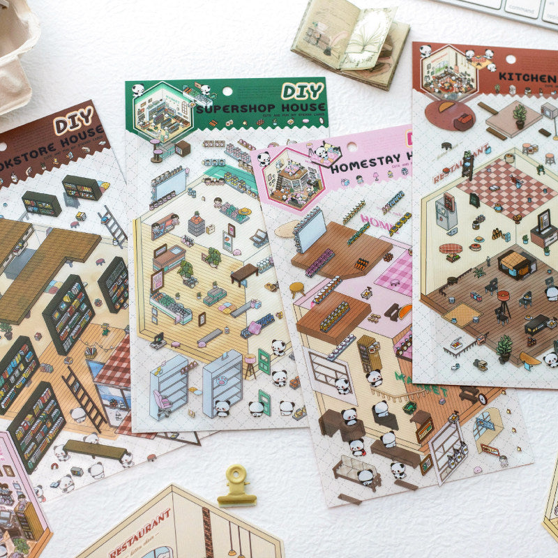 Panda DIY 3D Scene Stickers - 4 Cute Miniature Scenes #163