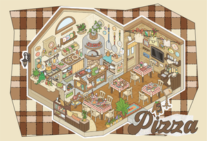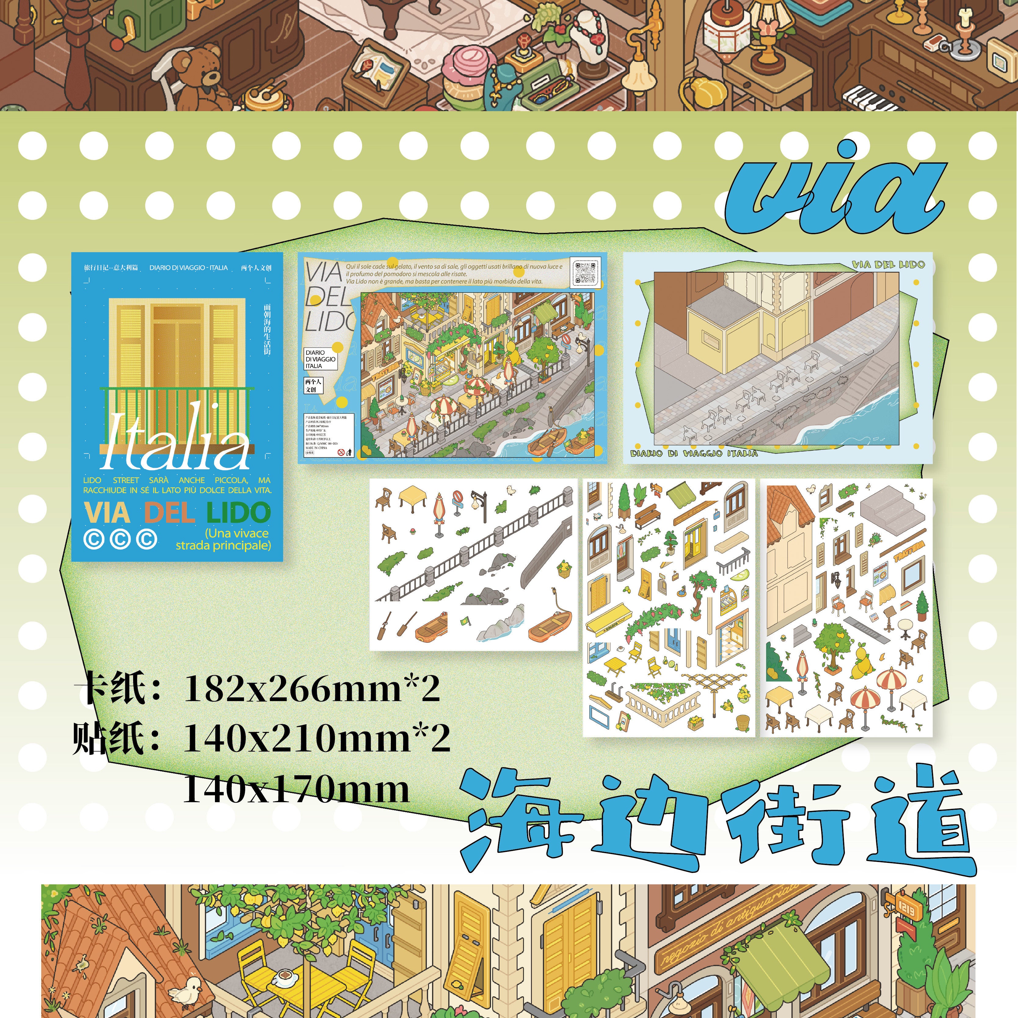 Ice Cream Shop, Pizza Shop, Vintage Shop, Seaside Street View, All in-4