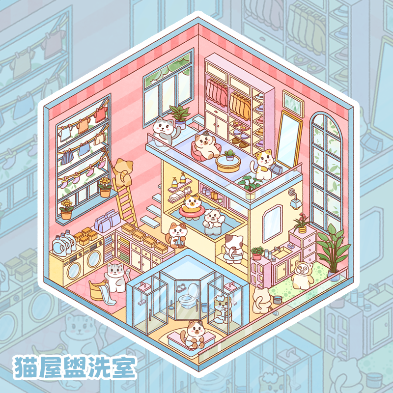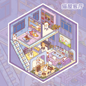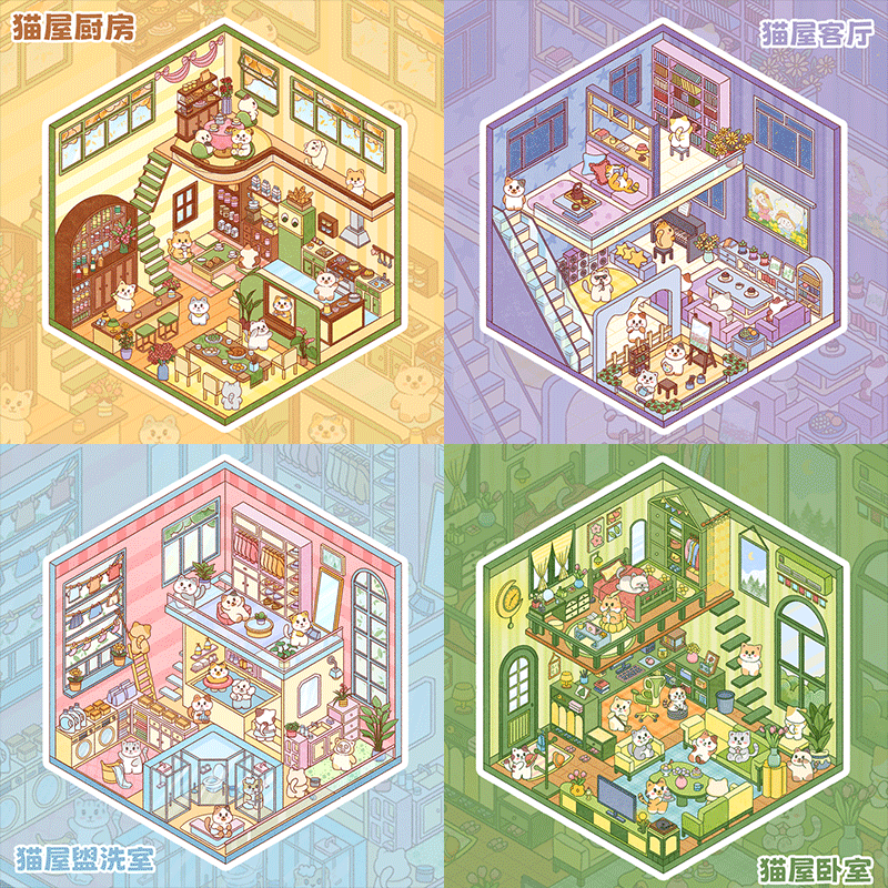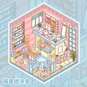 Square Box Workshop Landscape Stickers Cat House Series Stress Relief Materials for Journals, Kids' Drawings, Temperature Data, and More
